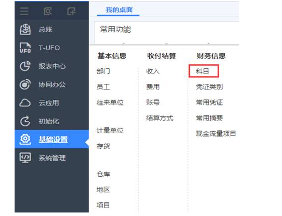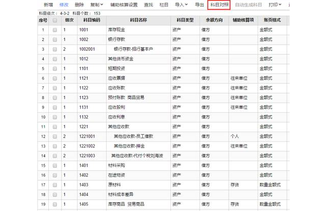 2.点击【基础设置】-【科目】,再点击【科目对照】,如图下: