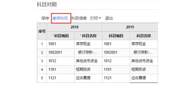 4.或者点击差异科目,也可以看出来18年与19年差异了哪些科目,进行对应即可,如图下: