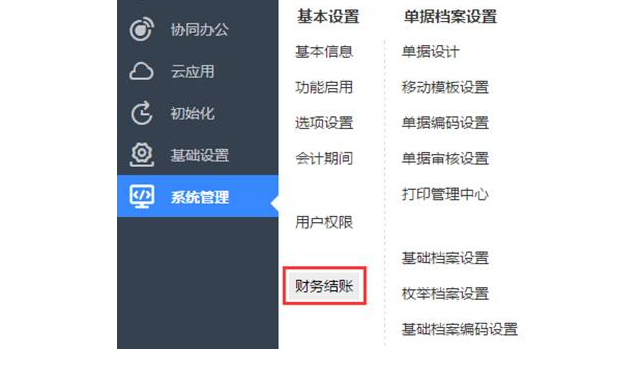 6.点击【系统管理】-【财务结账】,选中12月份点击取消结账,如图下: