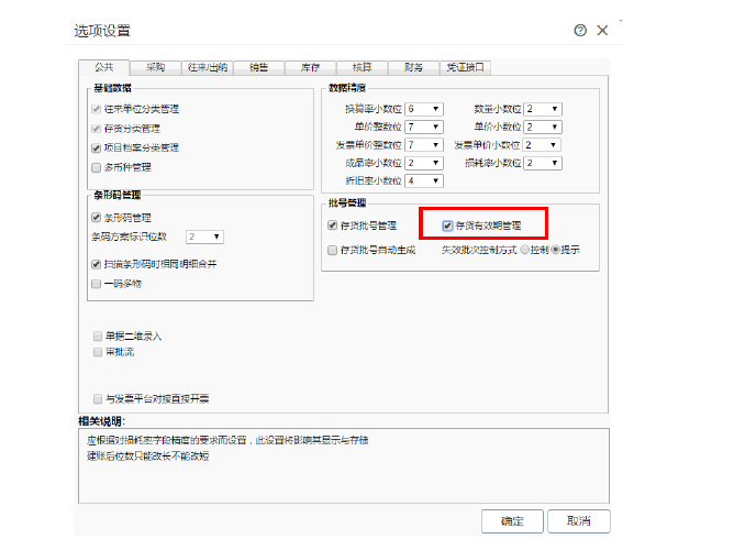 一般针对有正常使用期限的商品,药品或食品等等,在T+中有效期是与批号一起连用的,启用有效期管理的前提是先启用批号管理,同时在存货档案中需要进行有效期管理的存货需要勾选有效期管理选项,在进行后续的出入库单据操作时,需要对有效期进行选择。功能启用入口:【系统】-【账套设置】-【选项设置】-【库存】-【有效期管理】。