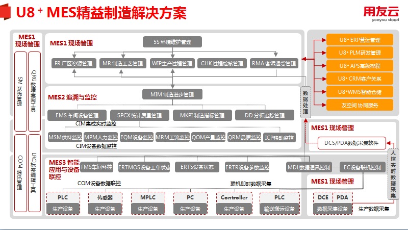 用友U8+MES产品的功能简介与业务场景,U8+MES与U8车间管理模块的差异,U8 + MES精益制造解决方案,U8+ERP/MES应用一体化......