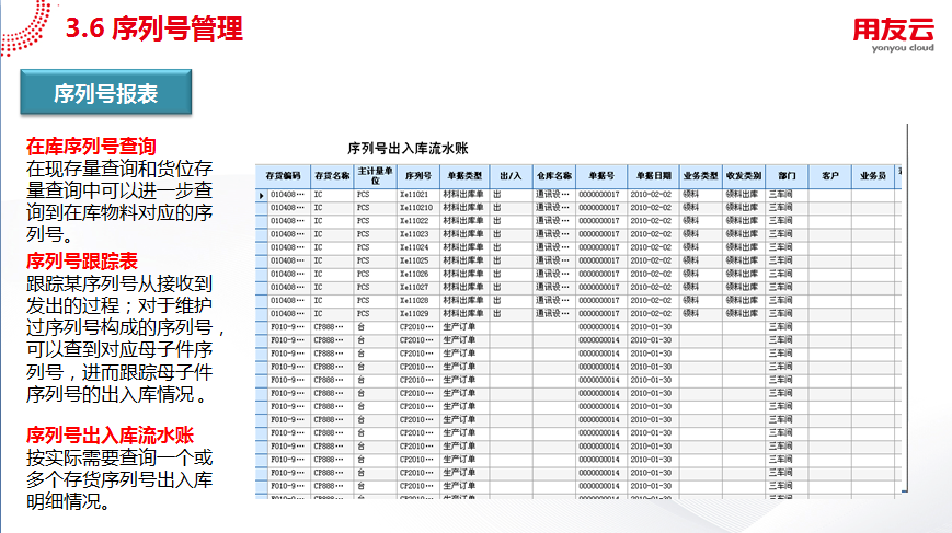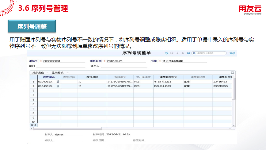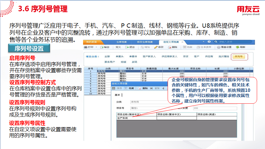 用友U8-15.0库存管理--序列号管理,序列号管理广泛应用于电子、手机、汽车、PC制造、线材、钢缆等行业.U8系统提供序列号在企业及客户中的完整流转,通过序列号管理可以加强单品在采购、库存、制造、销售等各个业务环节的追溯......