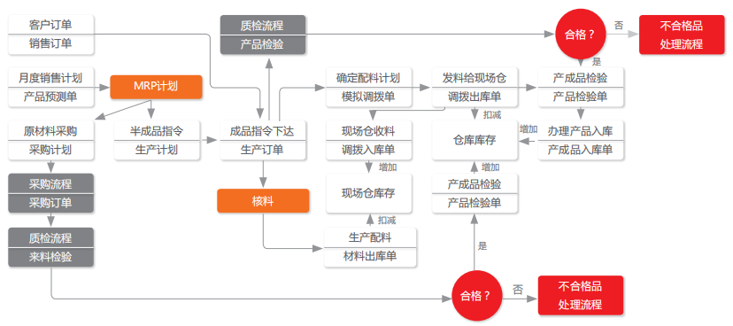 改进生产管理计划和执行流程:提高计划编制效率,根据输入订单和预测数据实现ERP自动物料规划,替代手工编排计划 的方式。从而严控车间入库和领用,提升车间物料管理水平,提升订单交付率。
