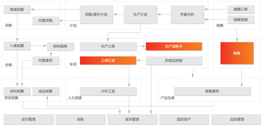 • 计划排产快速便捷,尾数库存得到充分利用:生产部经理对销售订单进行审核后,计划人员进行齐套分析,同时考虑尾数库存,下达毛 坯和成品生产计划到各计划科。各计划科再将生产计划下达到各车间,形成一个完整的计划体系,方便日后查询跟踪和统计,并且尾数 库存也得到合理消耗,保证了最优库存。