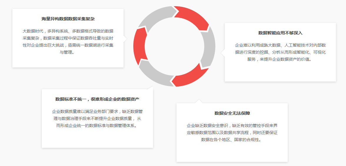 数据中台,以实现企业数智化为使命,以构建“看、选、用、治、评”闭环为方法论,以数据中台和智能中台为工具,深度赋能智慧企业建设。数据采集能力:基于主流数据源的连接和采集、批流一体数据采集与融合,实现企业数据运维的自动化、数据运营的资产化。数据建模能力:基于跨场景多维引擎的可视化数据建模平台,轻松构建企业级安全、可靠、高效的数据治理体系;数据应用能力:智能分析、智能工场、流程机器人无缝打通AI训练、可视化辅助决策、智能流程自动化,实现“人人皆可用智能”。