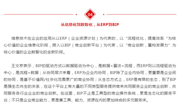 8月15日,2020商业创新大会东部峰会在苏州太湖国际会议中心隆重召开,用友网络董事长王文京发表精彩演讲,指出从ERP到BIP,企业呼唤商业创新平台。用友将与生态伙伴及社会各界携手,共同推进数字经济时代的商业创新。