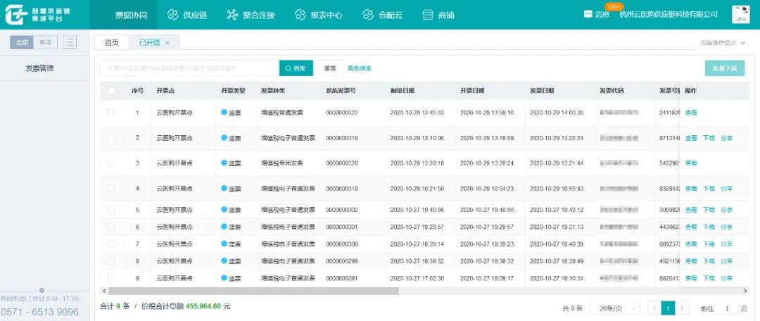 10月28日,杭州继宁波之后成为专票电子化的试点地区,云医购联合用友税务云,以票单协同平台为依托,仅仅两个月的时间,打造出一个基于税票电子化与上下游网络协同的产品“D+票灵通”,并成为杭州专票电子化的第一批试点单位。