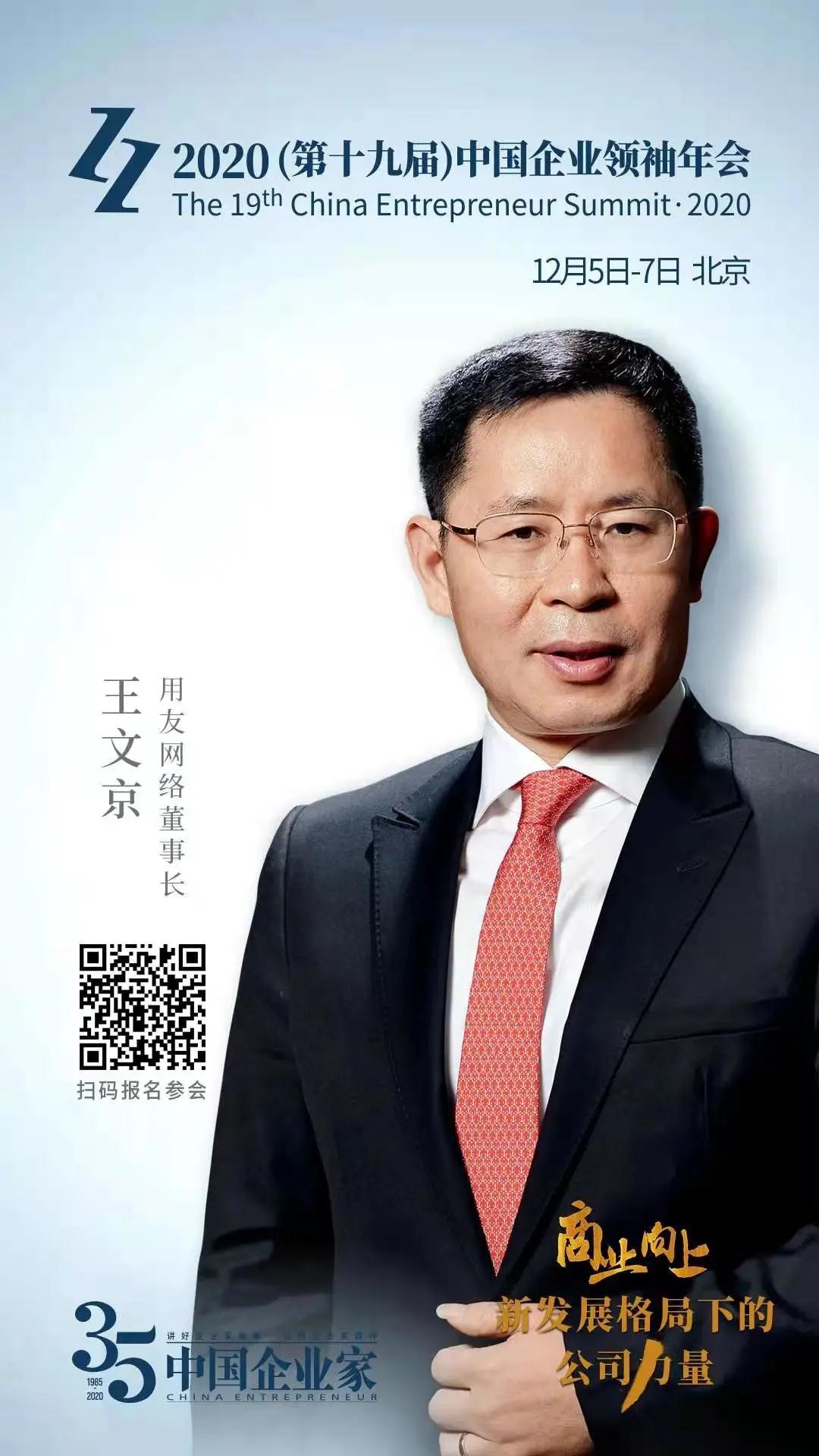 12月5日至7日,2020(第十九届)中国企业领袖年会在京举行用友网络董事长王文京受邀出席,并将在7日发表闭幕式演讲,届时,会有哪些精彩观点分享,值得期待!