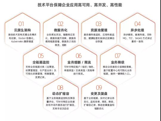“可分可合”的理念是针对不同的部署和应用场景,实现不同粒度的微服务拆分与组合。在公有云上适应高并发、高可用的要求,需要较细粒度的微服务。而在专属云上通过特殊的技术封装,实现微服务的场景化合并部署和运行。针对不同的客群采用不同的部署模式,实现场景化的组合与拆分。