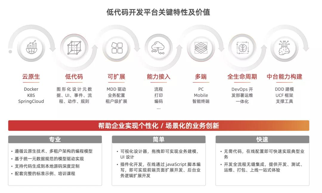 低代码开发平台用于低成本的快速能力扩展和新业务开发,集成连接平台实现云内和云间的数据集成、API 集成、应用集成等功能。