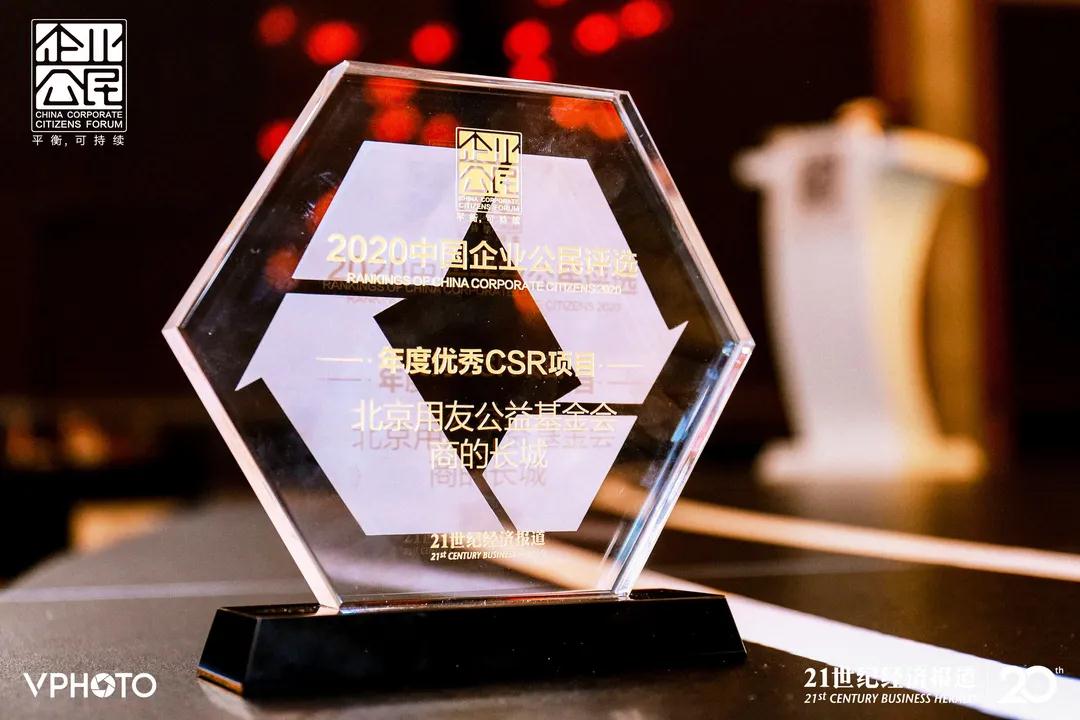 2020年12月19日,由21世纪经济报道举办的2020年第十七届中国企业公民论坛暨中国优秀企业公民颁奖盛典在上海外滩茂悦大酒店成功举行。主办方代表、CSR领域专家学者、40多家入围榜单的企业和CSR项目代表等近300位人士参加了此次盛会。会议揭晓了2020年度中国企业公民评选榜单,用友基金会“商的长城”项目荣获“2020年度中国企业公民评选——年度优秀CSR项目”。