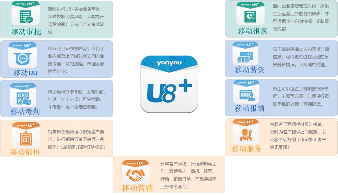 U8+移动应用是利用移动互联网技术和设备,连接来自各地的团队,快速处理企业经营管理中的即时消息传递通知和反馈、 数据上报、指令下达、业务单据审批、经营数据报表查询等, 大幅提高工作效率,使业务不受疫情影响。