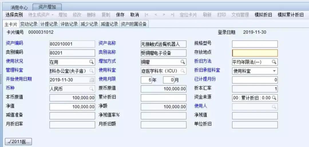 对于受捐赠的资产,参照本院固定资产管理以及设备管理,满足设备的日常管理,同时满足资产的价值管理。