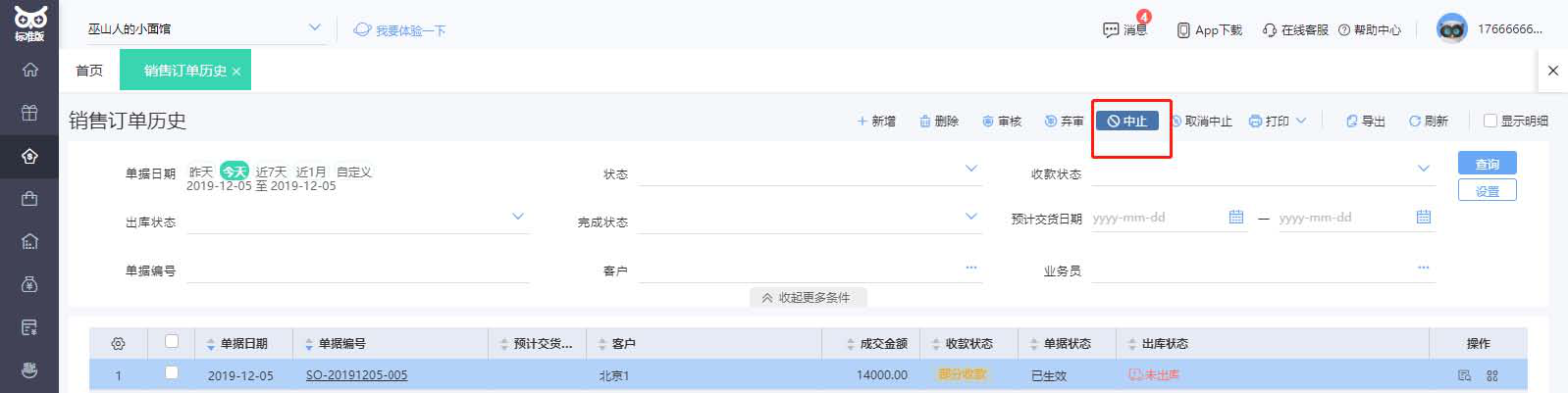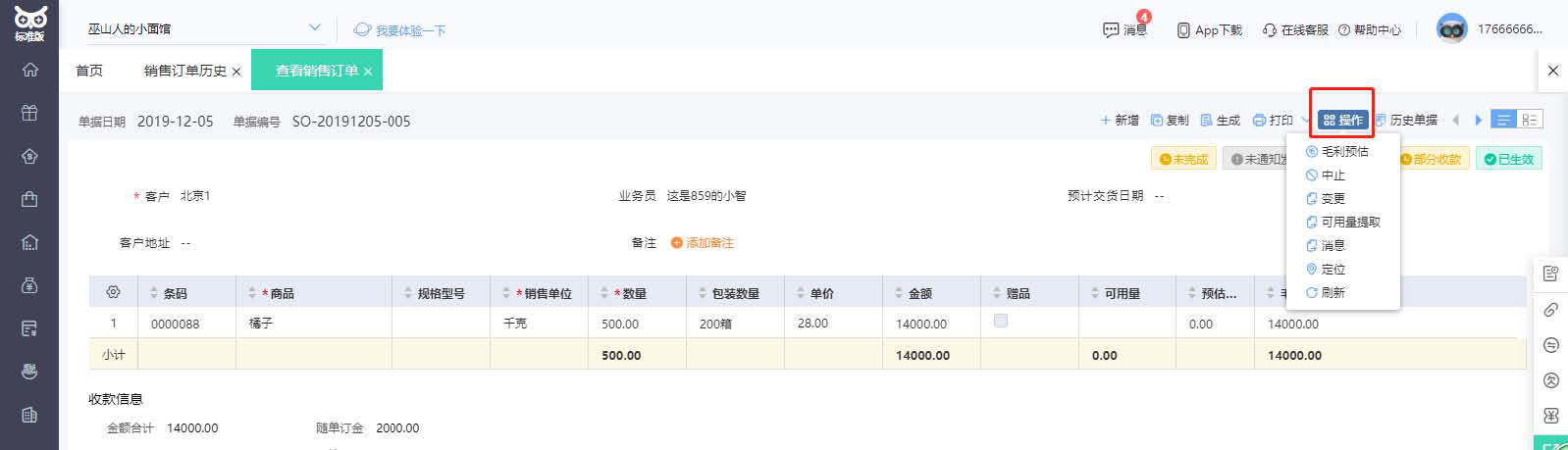 部分收款:订单明细全部收款完成(销货单明细至少有一条未收款完成)
