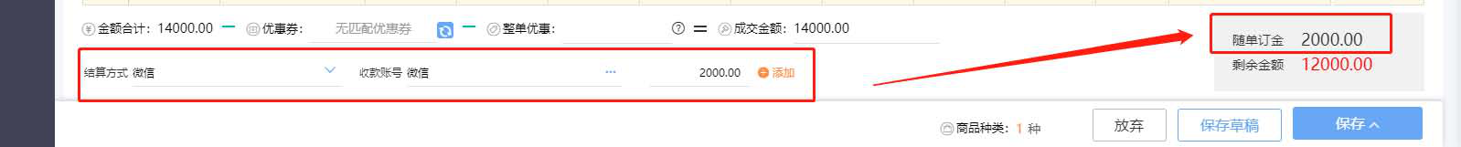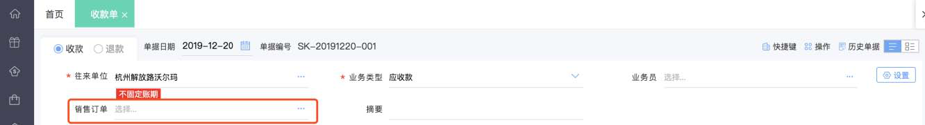 第三种:财务人员在收款单 选【预收】 并指定销售订单号