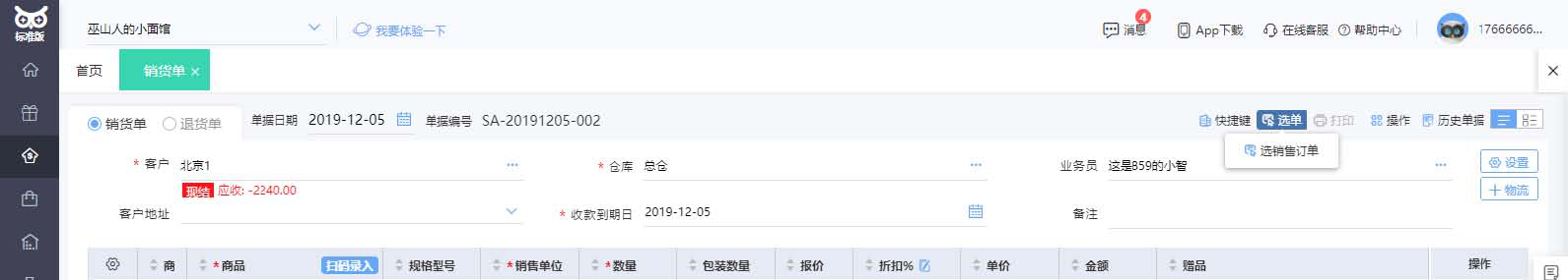如果是已经开过销货单,只能修改数量:并于 修改后的数量>=执行数量