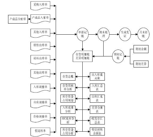 本系统可对库存系统生成的各种单据进行记账核算。