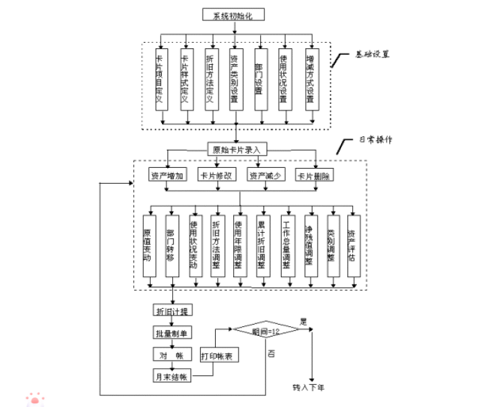 该系统的主要作用是完成企业固定资产日常业务的核算和管理,生成固定资产卡片,按月反映固定资产的增加、减少、原值变化及其他变动,并输出相应的增减变动明细账,按月自动计提折旧,生成折旧分配凭证,同时输出相关的报表和账簿。