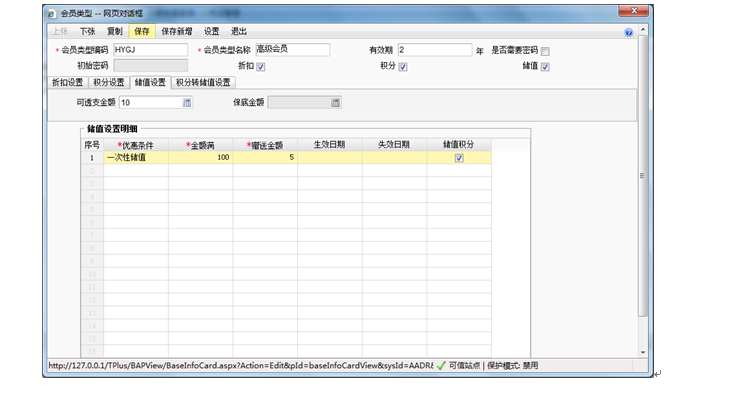 如果有储值优惠,可以在“储值设置”页签设置好优惠规则。