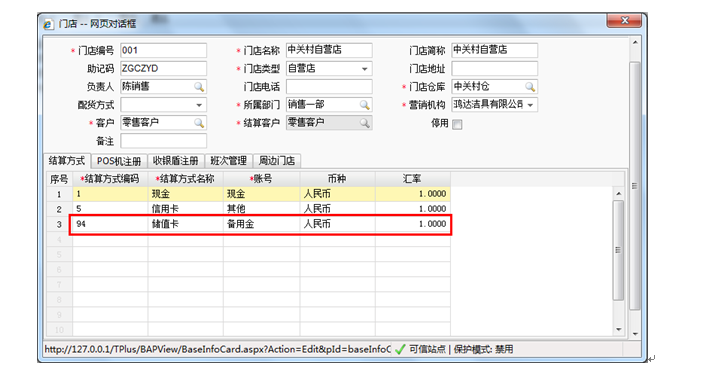 进入“基础设置”-“常用信息设置”-“门店”,在“结算方式”页签增加“储值卡”结算方式。