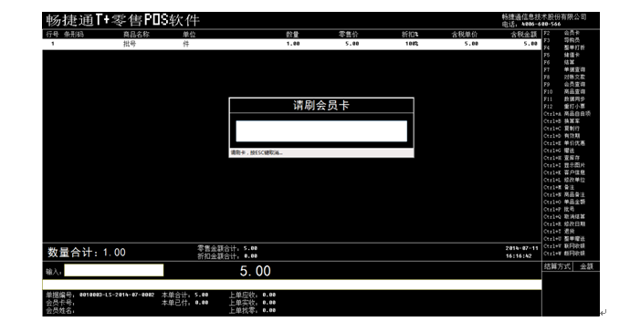 (1)扫描完商品后按F2输入需要消费的会员卡号