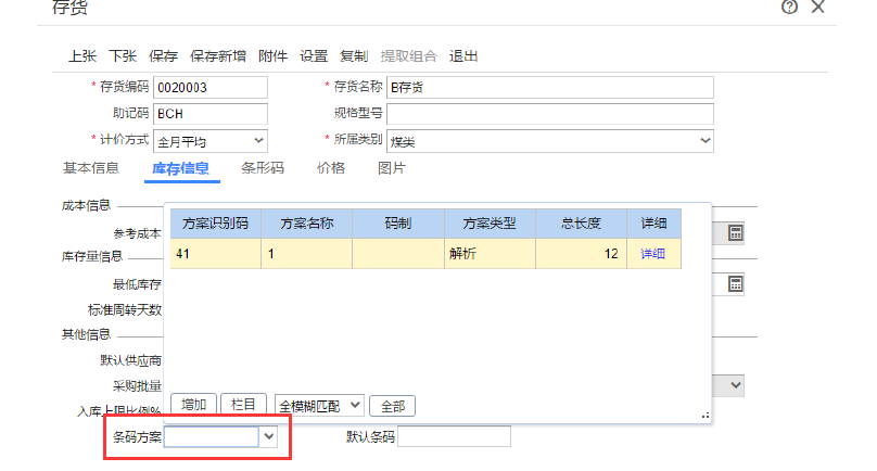 【 库存信息 】 【 条码方案 】 。