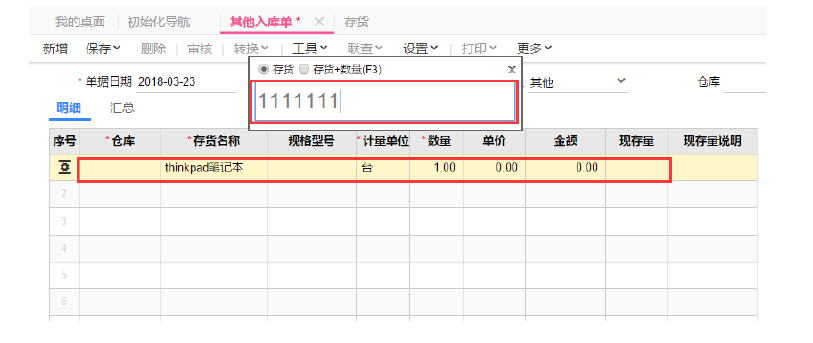 ,录出入库单据时 ,点击 【 更多 】 【 条形码录入 】 ,可以手工录入条