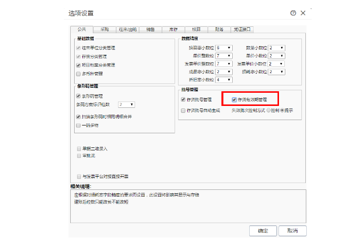 用入口: 【 系统 】 【 账套设置 】 【 选项设置 】 【 库存 】 【 有效期管理 】