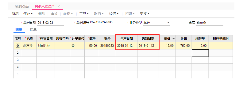 的存货 在 录 出入库单据时 需要 录入生产日期和失效日期 才可以保存