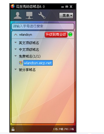 3、注册成功之后能够获得一个免费域名(此域名已经激活了花生壳)