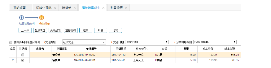 3、总账——结转销售成本