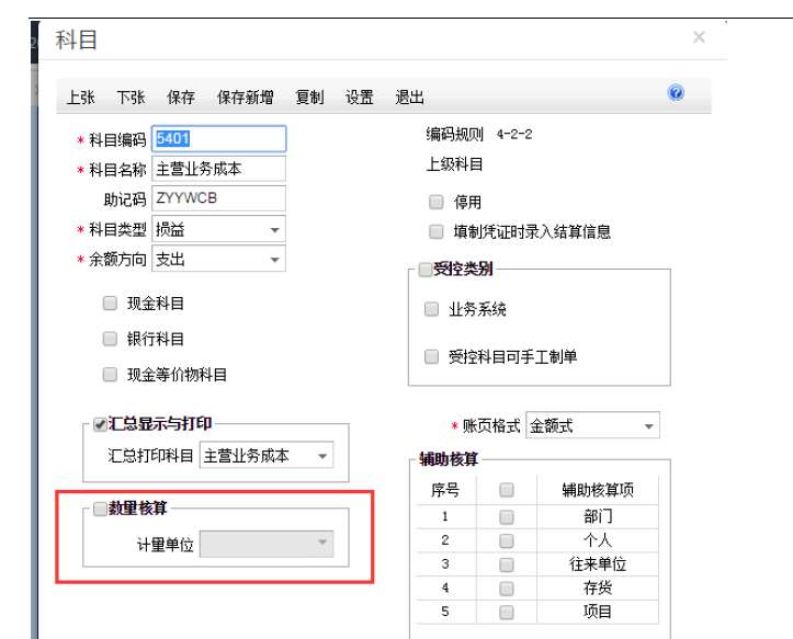 4. 三类凭证必须有数量辅助核算。