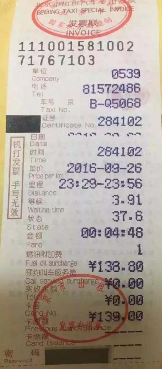 十四、收到一张印有旧版发票监制章的出租车发票。