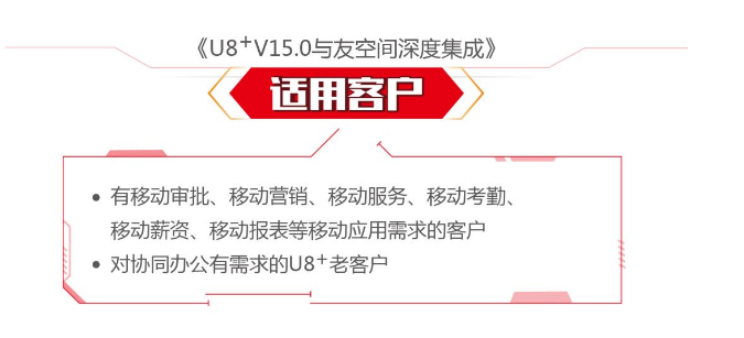 有移动审批、移动营销、移动服务、移动考勤、移动薪资、移动报表等移动应用需求的客户;对协同办公有需求的U8+老客户。
