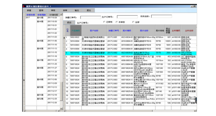 可以根据已排产的生产订单,结合 BOM 生成裁剪计划,可以根据销售订单号可查看对应周裁剪计划, 供管理层进行车间工作安排。