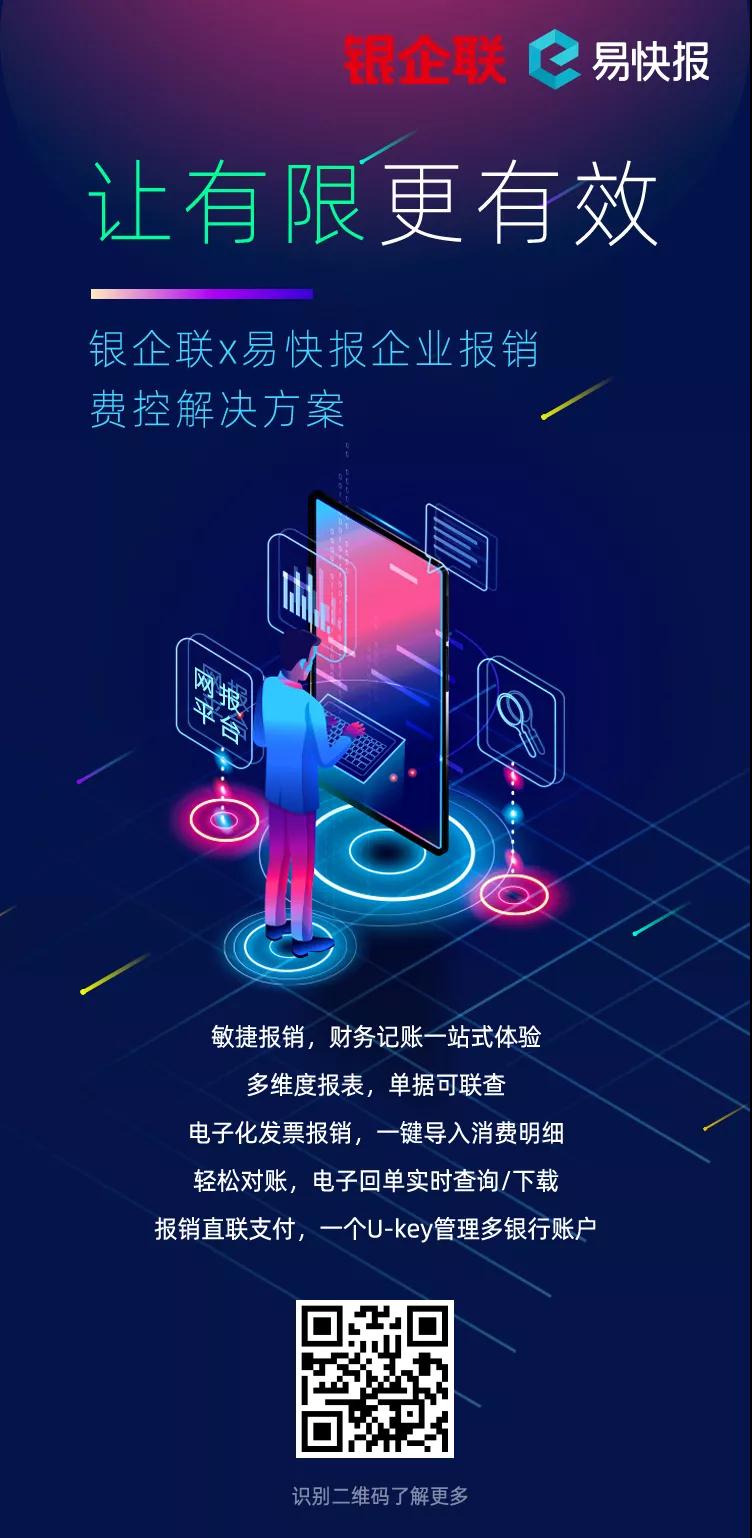 传统模式下,报销审批通过后,出纳需登录网银进行报销款项的支付,而报销系统与网银系统间各类信息繁琐的录入工作,费时费力,容易出错;且事后无法核验参看账单明细,报销对账存在一定难度。凭借银企联可支持超1400家主流银行的通道支付优势,以及易快报在费用标准、报销审批、预算费控、发票管理、报表分析等方面的专业服务能力,双方将联合解决报销系统与支付系统跨平台运作的问题;通过打通“报销-支付-记账”业务全流程,进一步简化企业报销场景与支付场景流程,让业务单据直接驱动网银付款,降低财务人员手工操作的支付风险,让支付更便捷。