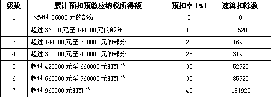 个人所得税预扣率表一