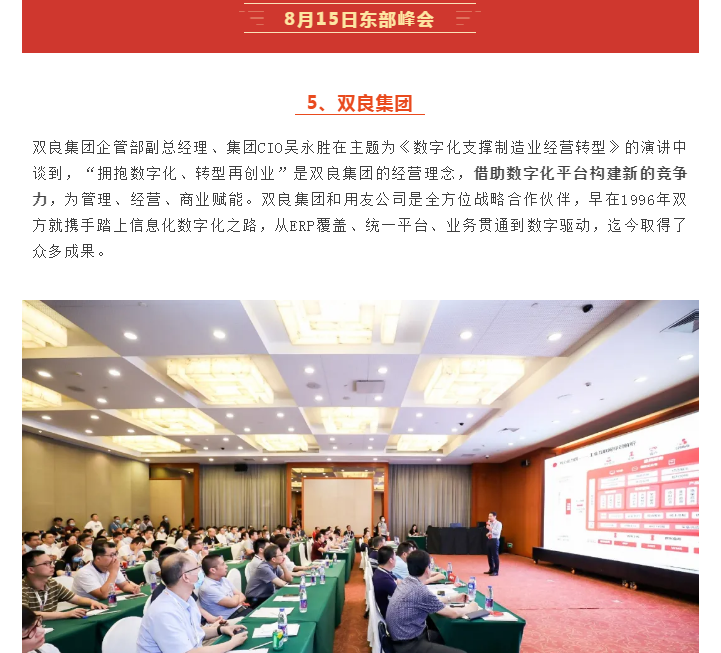 8月,用友四场商业创新峰会分别在珠海、苏州、成都和沈阳召开,期间智能制造专题论坛成功举行,座无虚席。与会嘉宾就5G+工业互联网话题,共同探讨数智化如何重构制造业生产力,并聆听了11家优秀实践企业的分享,为做实做优做强制造业提供了借鉴。