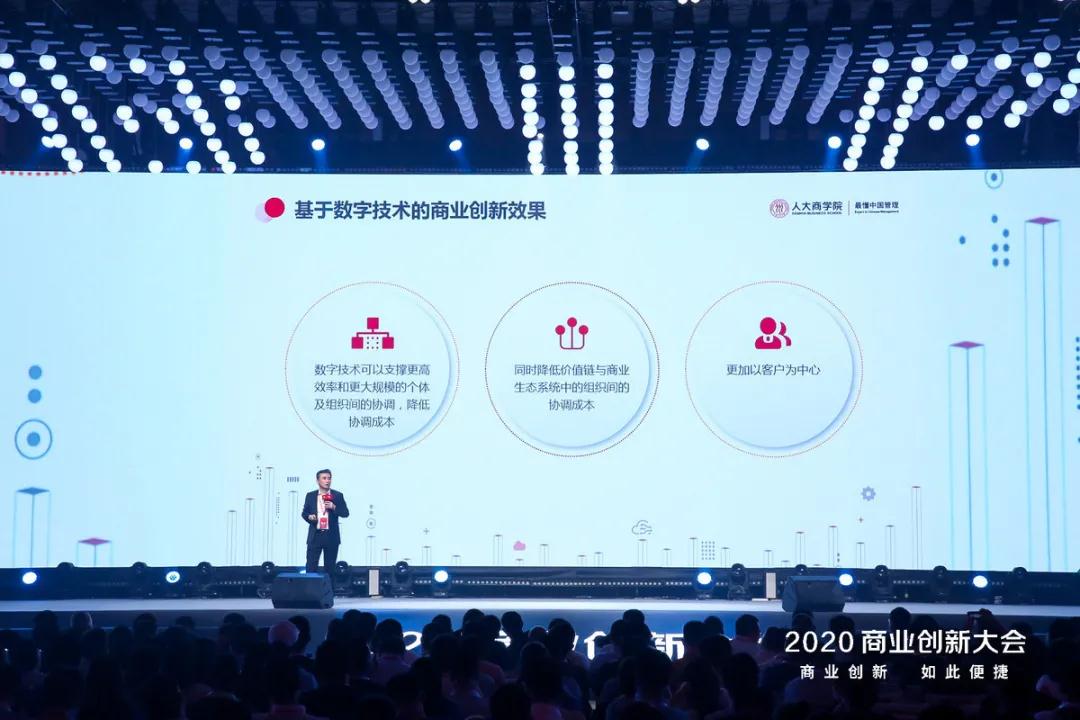中国人民大学商学院院长毛基业围绕《基于数字技术的商业创新》这一主题,重点探讨了两者间的紧密关系。他指出,全面移动互联和数字经济时代已经到来,业务模式在“创新”,产品形态在“创新”,销售渠道在“创新”,产业链也在“创新”,可以说数字技术所扮演的角色正在迅速转变——从过去提升边际效率,转变为推动商业形态根本性的创新与颠覆,支撑更高效率和更大规模的个体及组织间的协调,降低协调成本,同时降低价值链与商业生态系统中的组织间的协调成本,实现更加以客户为中心。