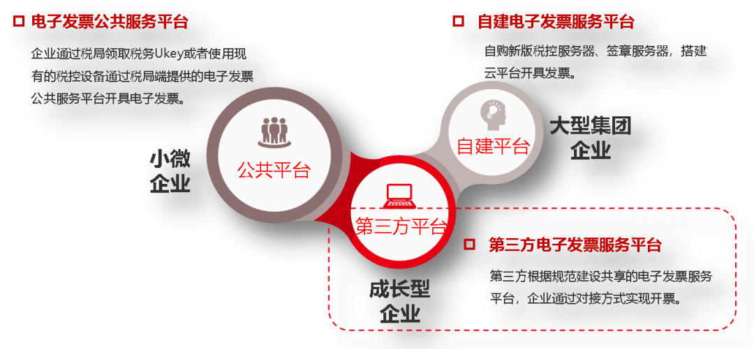 第二种是面向大型集团企业,这些大型企业可以自建电子发票的服务平台