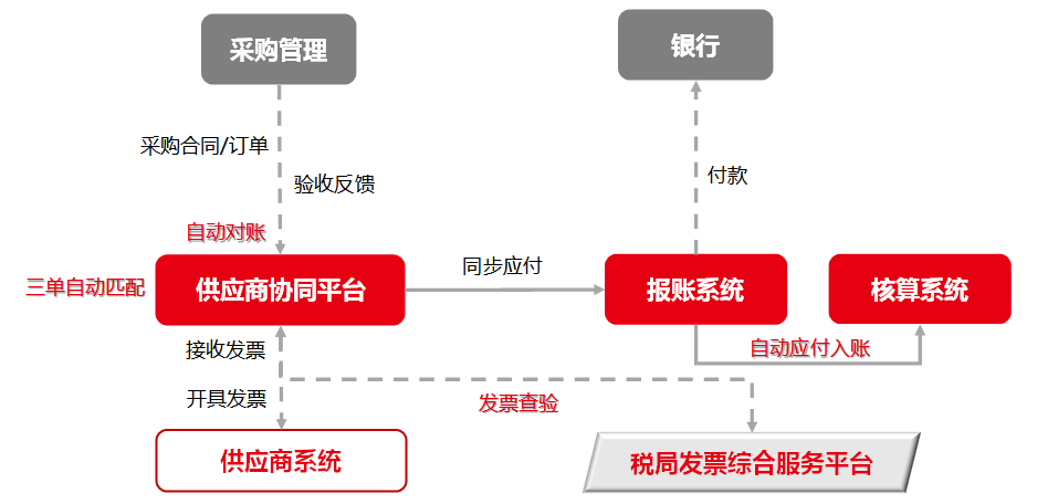 之前,由于税控的要求,企业发票管理存在大量的人工干预,此次专票电子化带来的“去税控”,将促成发票事务处理的集中化、自动化和智能化。企业选择自建开票平台、第三方服务平台或公共服务平台其中的一种开具模式,定时自动地开具发票,同时将业务数据与发票结果进行自动匹配。如,收取发票后,系统自动提取OFD格式的进项发票信息,进行查伪去重,同步应付系统,并自动应付入账。