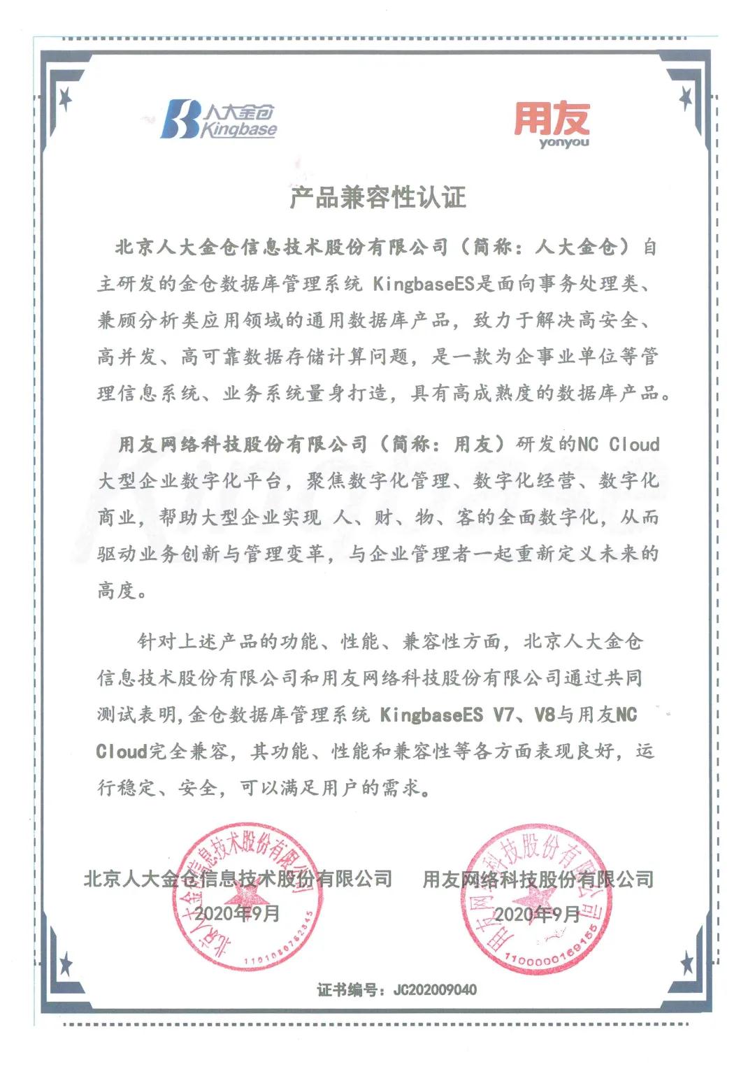 为加强自主创新能力,同时为大型企业数智化落地提供稳定可靠的平台支撑。用友NC Cloud与金仓数据库管理系统KingbaseES实现产品相互兼容。