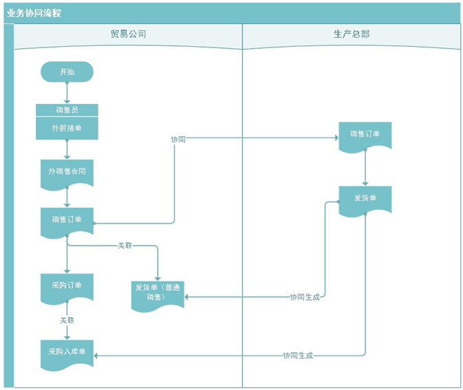 • 贸易公司销售接单后,协同采购订单给生产公司。