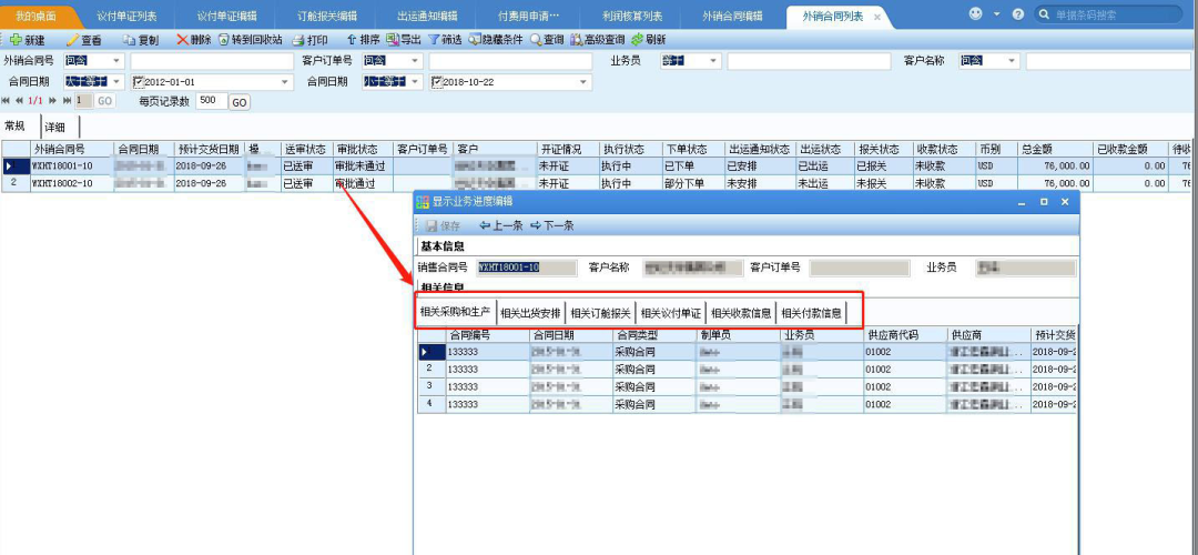 2) 把握每个可能出问题的环节,把订单、采购、验货、出货以及收付款进行有效串联,管理者和业务员可以及时把握进度状况。