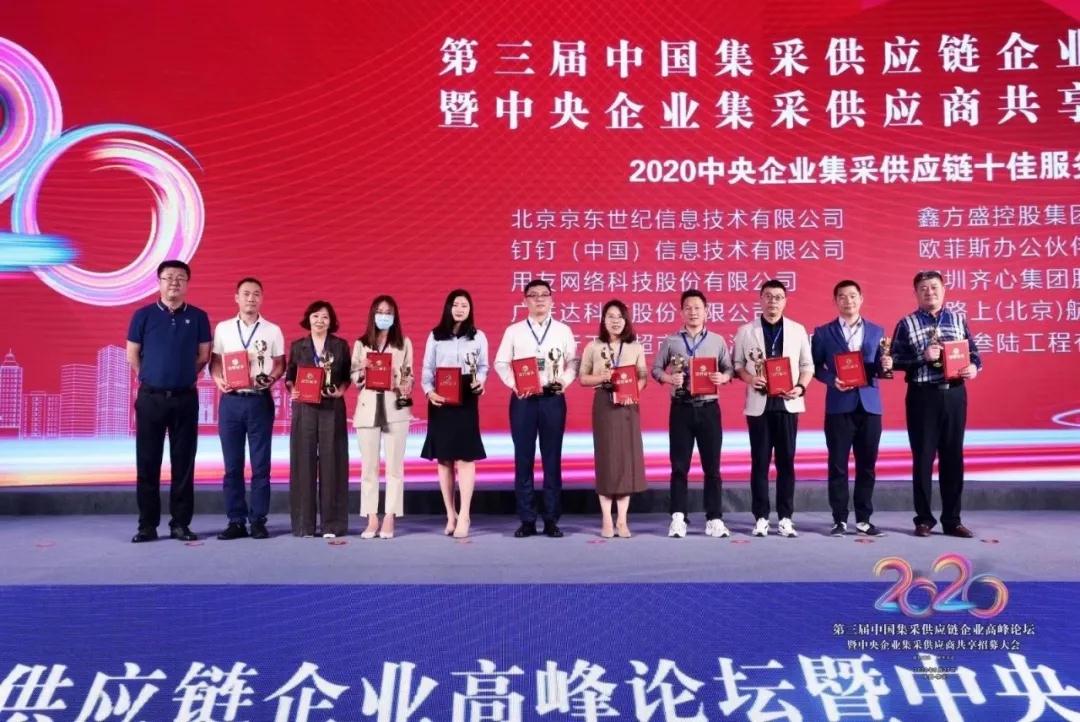 近日,用友网络受邀出席2020(第三届)中国集采供应链企业高峰论坛暨中央企业集采供应商共享招募大会,并获颁中央企业集采供应链十佳服务商。