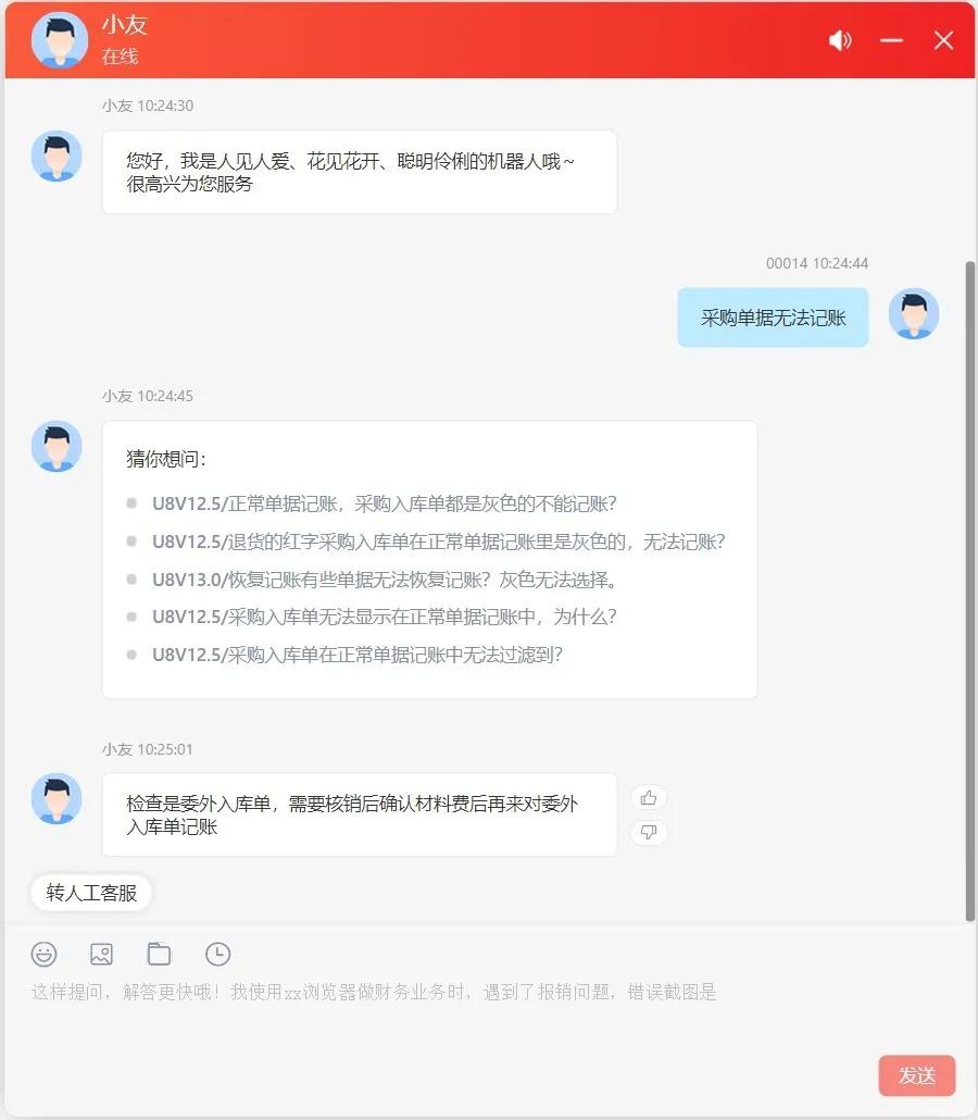 “小友”将自动唤起【召唤人工】选项,帮助用户更快捷的转人工服务。同时我们服务的兄弟们,将不断完善“小友”的知识库大脑,更新用户不满意的内容,让“小友”不断智能茁壮的成长。