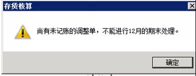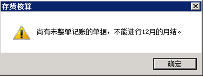 此时问题来了,在期末处理时提示过“未记账单据”问题,那么,此处单据未记账,说的是“整单”没有完全记账的意思,就是部分行记账了,此问题日常月份没关系,但12月不处理完毕,将不能结账。