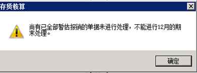 日常业务中存在这类情况“已全部暂估报销的单据”是对于已暂估业务在当前月份报销了,未完成最后的“结算成本处理”操作导致;如不处理,日常月份不限制,但12月份将无法期末处理。