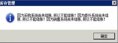 常规结账首先看是否启用采购、销售、委外等模块,如启用则必须先把这些结账了,才能对库存结账,提示如下图;当然,未启用的请忽略!按日账做账顺序来看,采购销售委外等最终的出入库终结在库存中;因此先对之前业务涉及模块结账,再对后续业务结账是一般遵循的顺序。