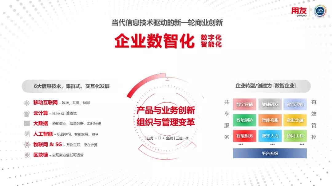 王文京认为,从农业经济、工业经济到现在的数字经济,人类商业发展史就是一部商业创新史。近现代以来,技术对商业创新带来的影响越来越大,以移动互联网、云计算、大数据、人工智能、物联网和区块链为代表的新一代信息技术正在集群式、交互化的驱动新一轮的商业创新。
